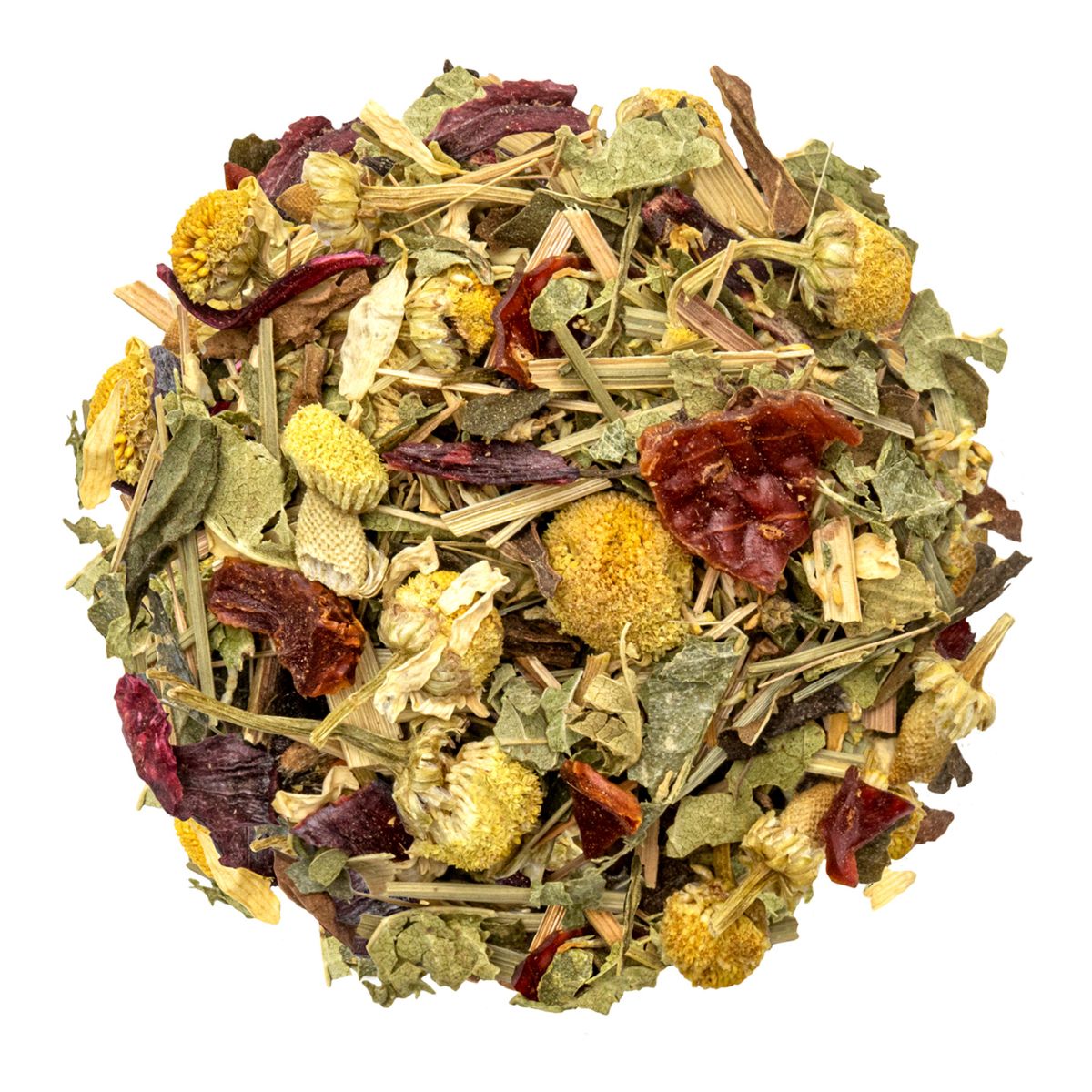 La camomilla di Tea Forté è una tisana biologica unica e rinfrescante, miscelata con camomilla biologica, rosa canina biologica, citronella biologica, ibisco biologico, verbena di limone biologica e condita con radice di liquirizia biologica.