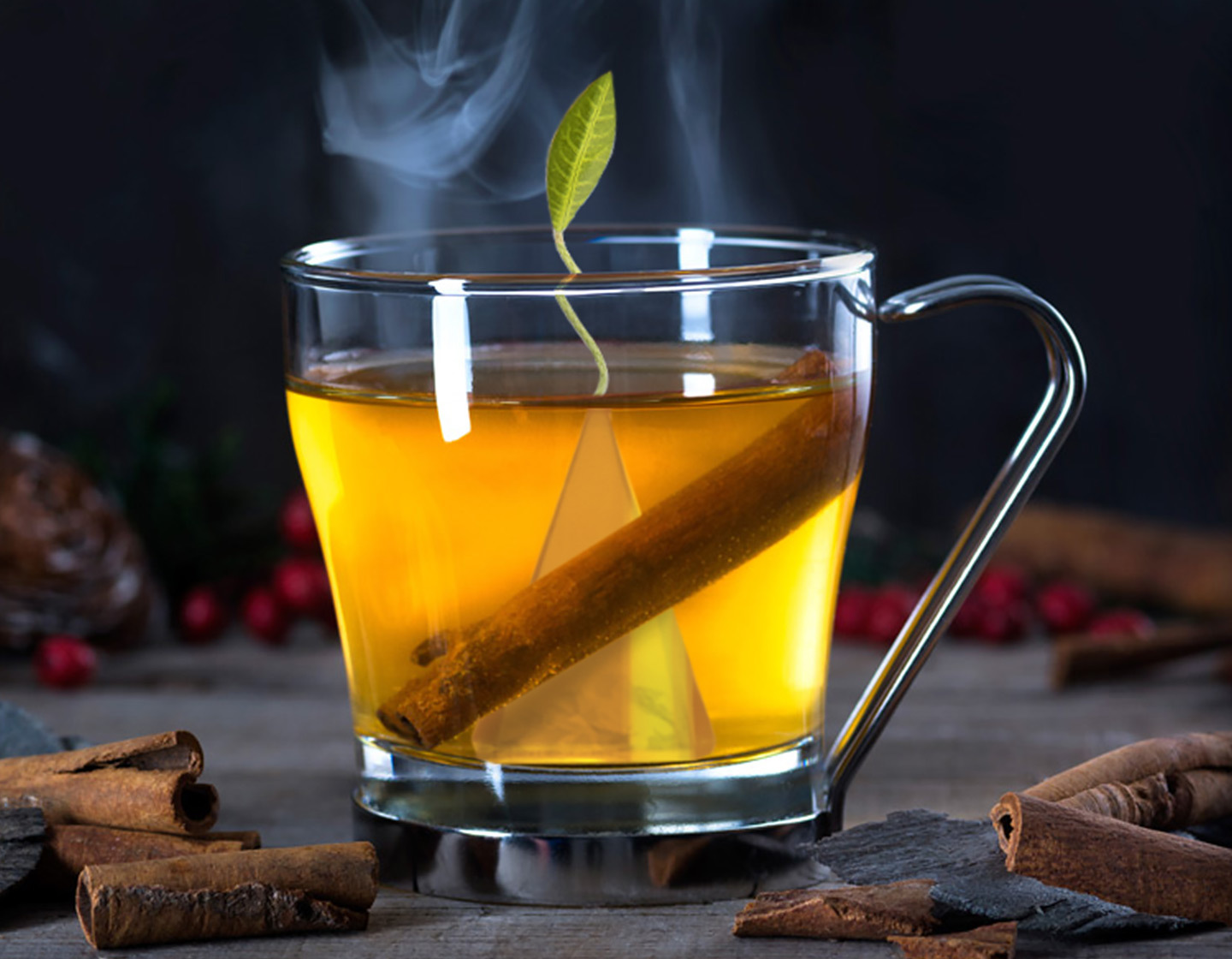 Al termine del' infusione, rimuovere gli infusori a piramide o il tè sfuso. Per guarnire, aggiungere altre stecche di cannella e fette di mela. Da gustare subito, ben caldo.