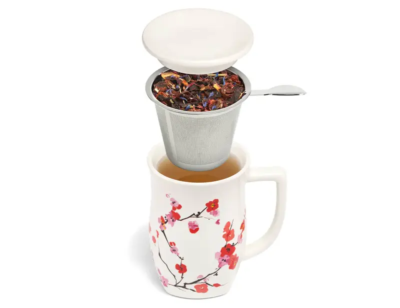 Infusez de votre thé en vrac préféré dans cette tasse d'infusion à usage unique, dotée d'une poignée et d'un infuseur de thé en vrac en acier inoxydable. Le couvercle garde votre thé au chaud pendant l'infusion et sert de sous-verre pour le panier de l'infuseur une fois l'infusion terminée. Prenez le temps de réfléchir à la beauté de la nature et savourez un thé parfait avec Fiore Sakura.