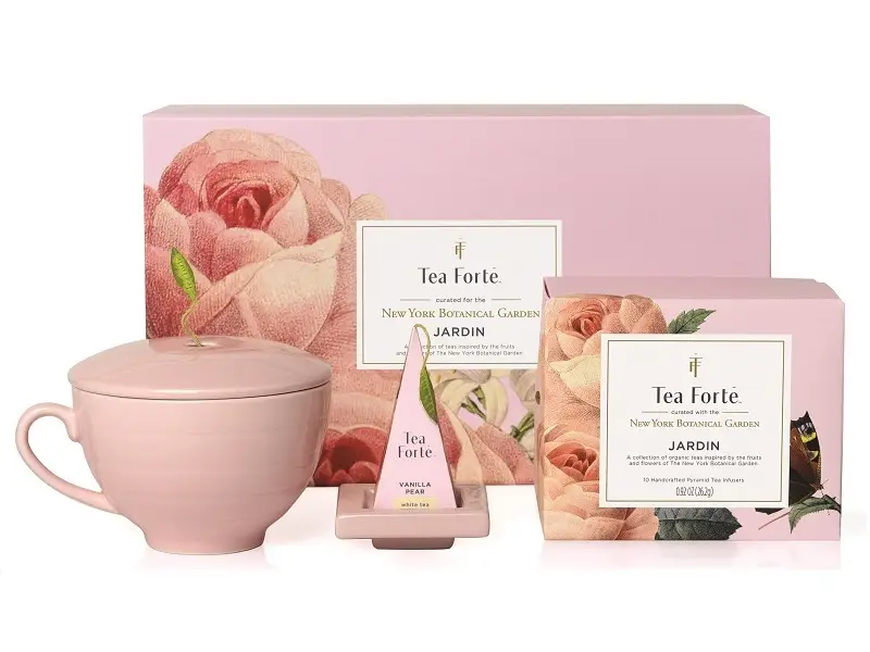 L'élégant coffret Jardin fait partie de l'édition limitée de la Collection Jardin, qui propose une sélection raffinée de thés et d'infusions biologiques, en collaboration avec le Jardin botanique de New York (NYBG).