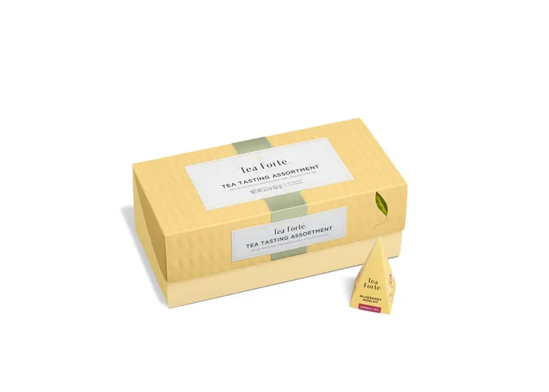 Un elegante cofanetto regalo per una degustazione delle migliori miscele di Tea Forté. La confezione contiene due iconici filtri piramidali per ognuna delle 10 miscele: