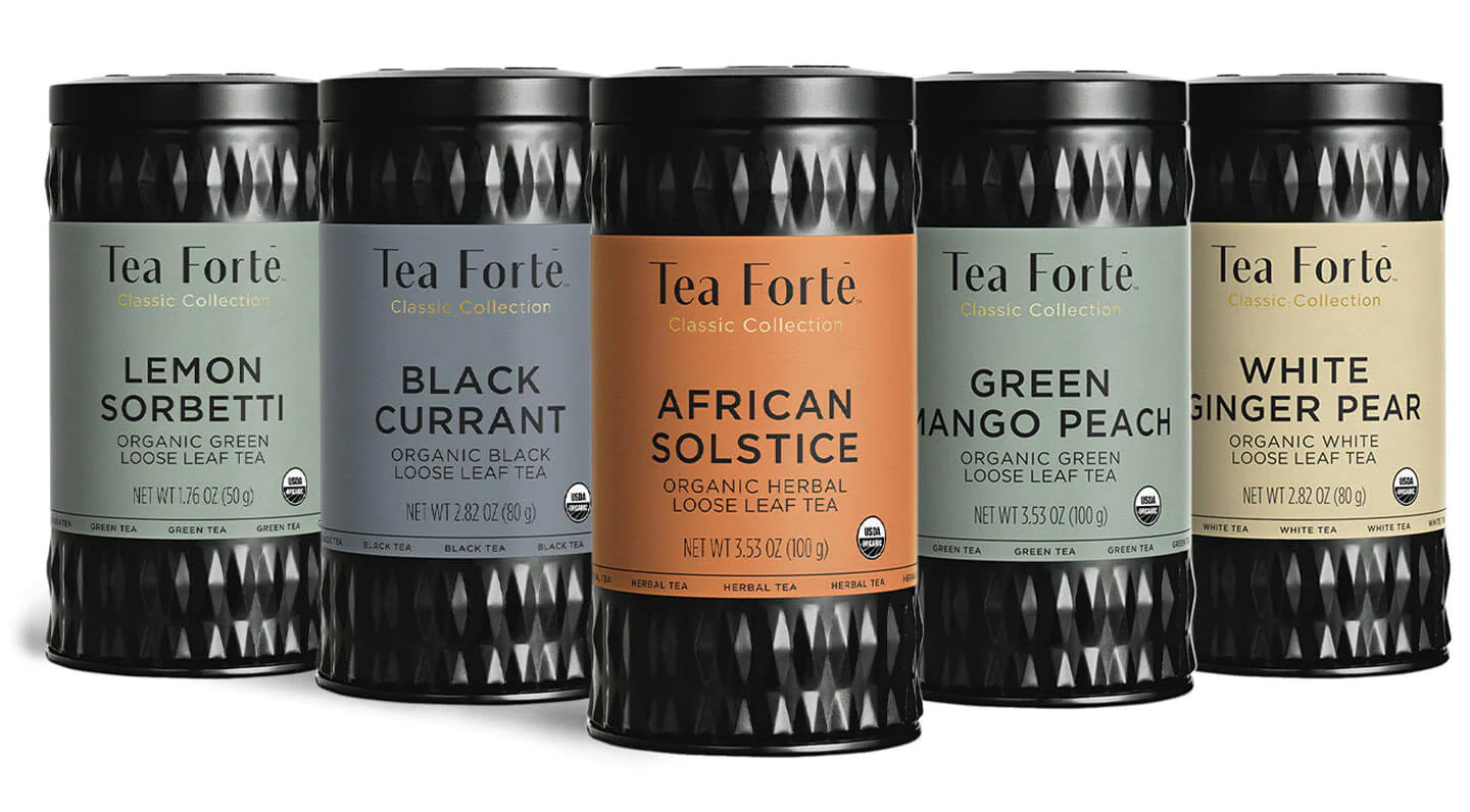 Per gli appassionati di tè che sanno cosa gli piace e amano ciò che conoscono, i barattoli sono un modo perfetto per garantire settimane di piacere. Contenenti 35-50 porzioni per ogni elegante barattolo di metallo, le offerte di Tea Forté possono essere mescolate e abbinate, dando vita a una serie di barattoli pieni delle miscele preferite. Costruite una collezione che soddisfi i gusti della persona amata, sia che prediliga i sostanziosi oolong, le classiche miscele di tè nero, le delicate tisane o qualsiasi altra scelta di Tea Forté.