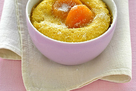 3) Imburrate 4 stampini monodose, della capacita di 2,5 dl, distribuitevi le albicocche sgocciolate e copritele con la pastella. Spolverizzate con lo zucchero e cuocete in forno caldo, a 180gradi, per circa 35 minuti finche la pastella si sara gonfiata e rappresa. Servite i clafoutis caldi.